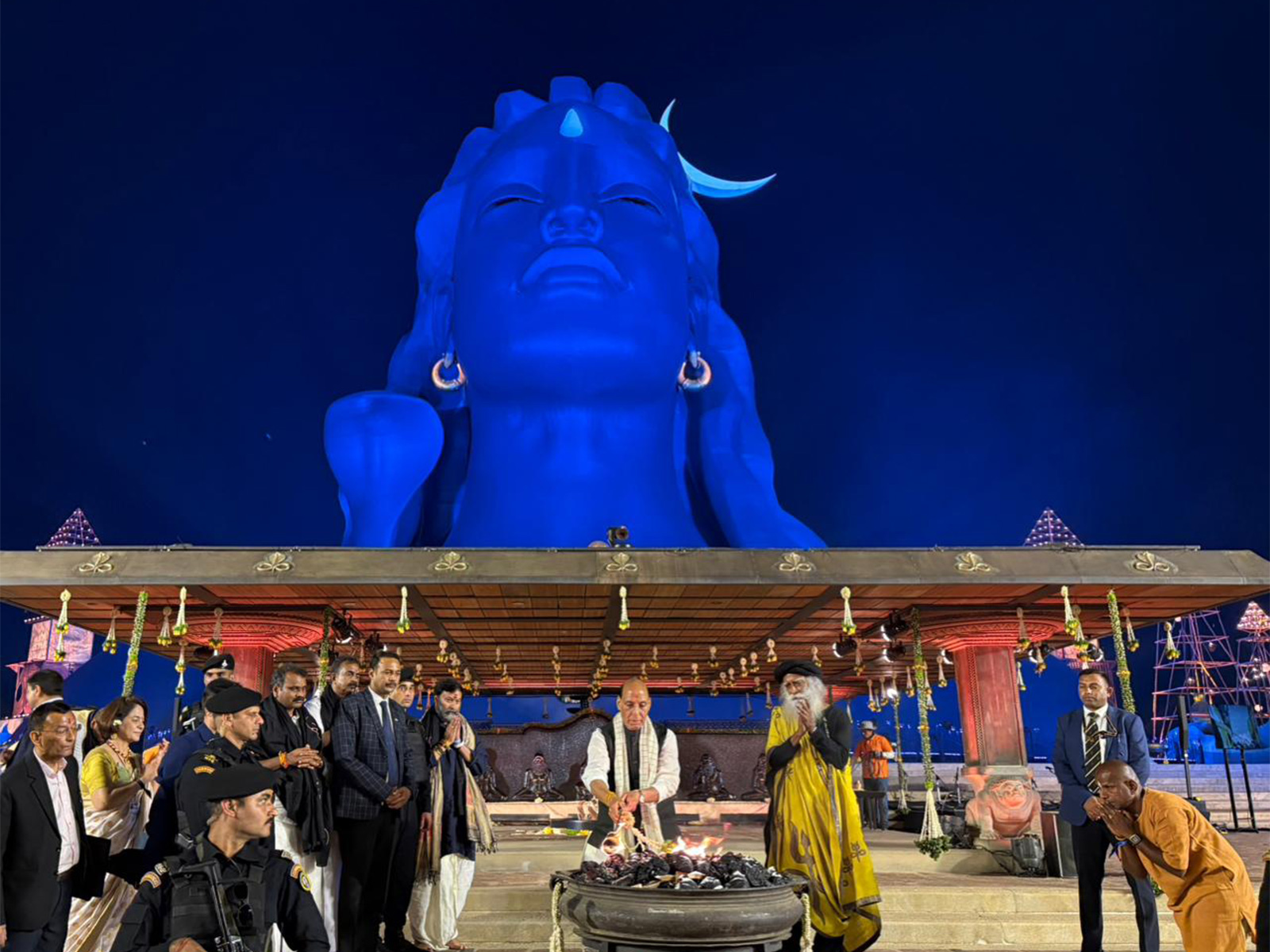 Earlier this evening, Defence Minister Rajnath Singh visited the Surya Kund at the Isha Yoga Foundation, where he also offered prayers. He then performed darshan and puja at the Linga Bhairavi Temple and the Dhyanalinga Temple along with Sadguru Jaggi Vasudev. Ahead of the Maha Shivratri celebrations, Rajnath Singh also planted a sapling in the premises in front of the Adiyogi statue.-ANI